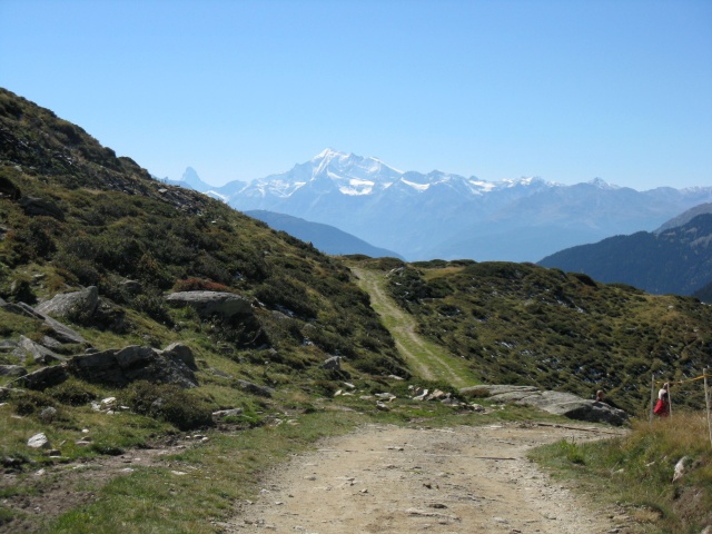 Verso Kuehboden-Fiescheralp - panorama Mischabel, Cervino, Weisshorn