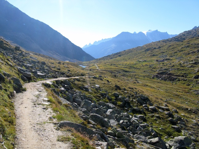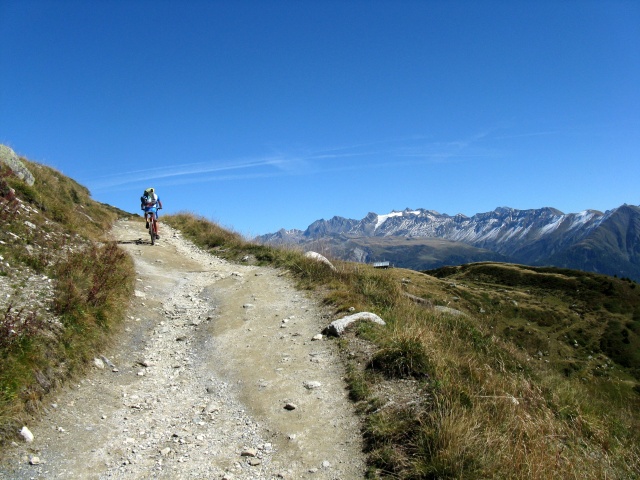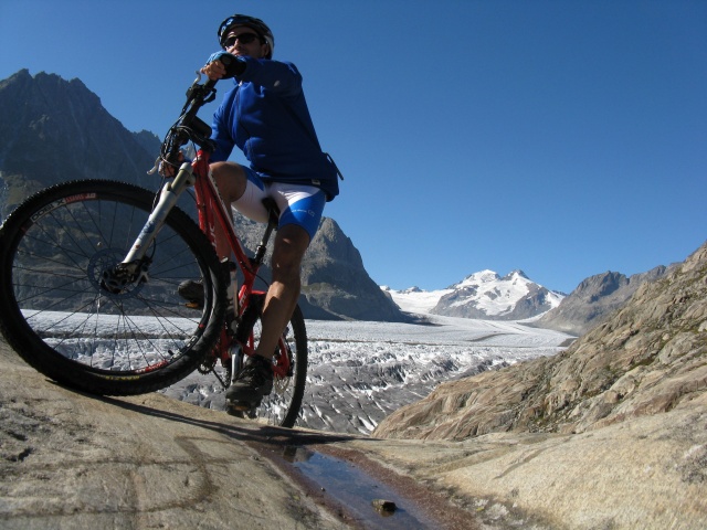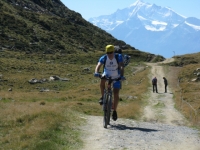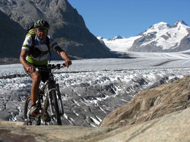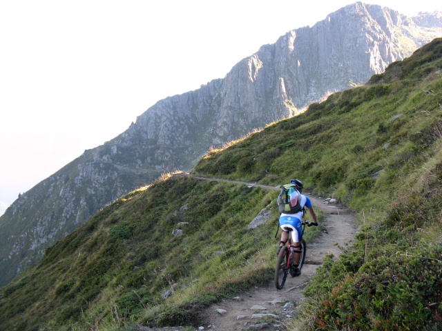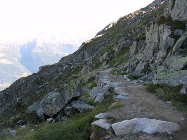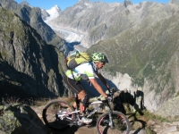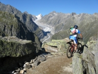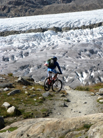 Single-track che aggira il Taelligrat - vista sul Fieschergletscher