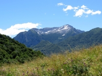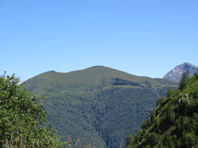 Sguardo sulla Conca d'Esino dal sentiero per l'Alpe di Esino, sullo sfondo il Sasso di San Defendente ed il gruppo dei Pizzi di Parlasco
