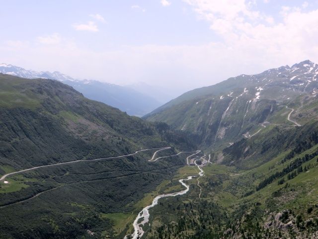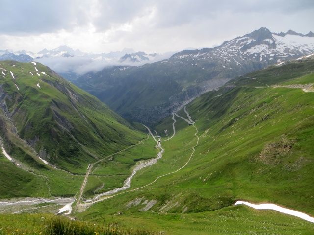 Panoramica sulla discesa dal Grimselpass e sulla salita per il Furkapass