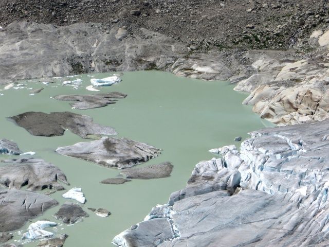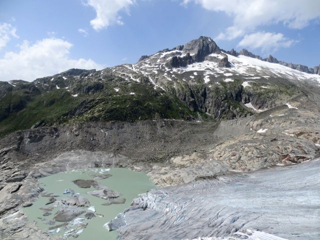 Tratto finale del ghiacciaio del Rodano, il lago prima delle cascate