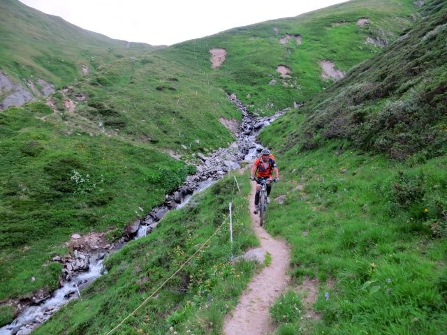 Discesa da Bidmer a Firbaech lungo la traccia erbosa