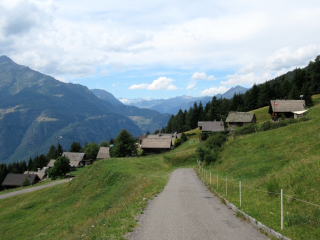 Scendendo dall'Alpe Foppascia - panorama sulle baite di Fararenca con sfondo sul Gottardo