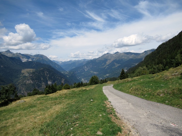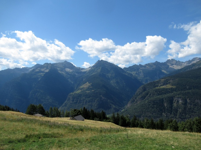 Panorama lungo la salita su sterrato che da Monte Angone porta all'Alpe dei Piai - La Val Chironico tra il Pizzo di Mezzodì ed il Pizzo Forno