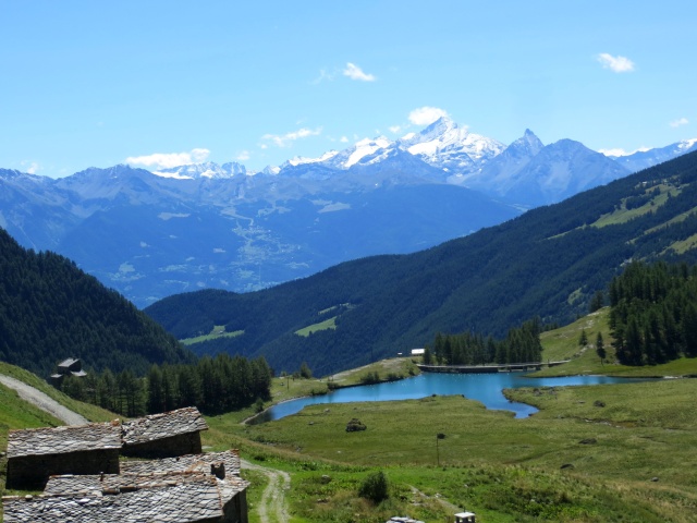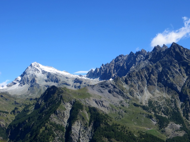 Mont Gelè ed ai suoi piedi - visibile - si trova l'Alpe Thoules, meta di giornata
