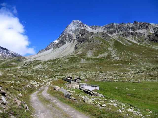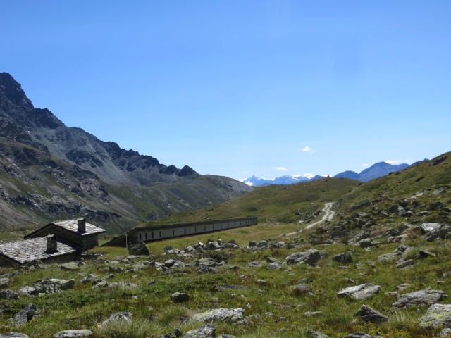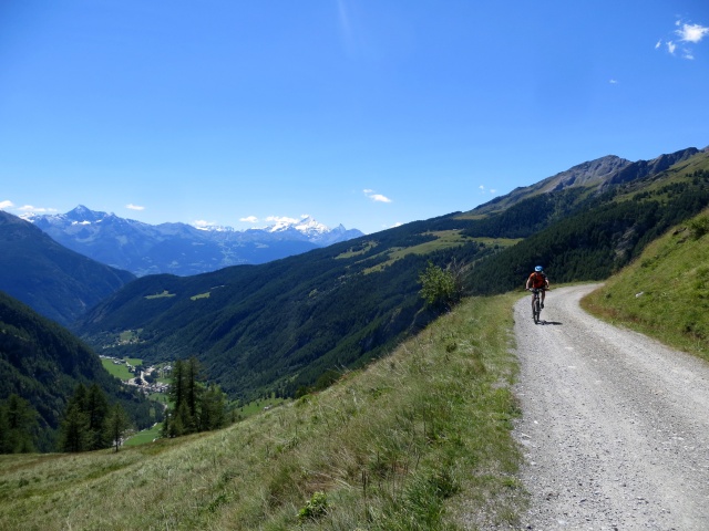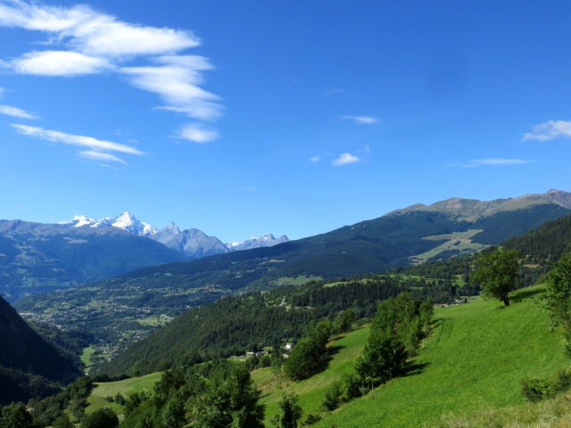 In direzione della conca di By - sullo sfondo il Mont Gelè ed ai suoi piedi - visibile - si trova l'Alpe Thoules