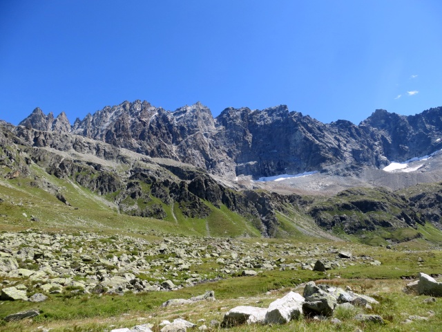 Nella conca di By - vista su Becca Crevaye (3.320), Mont Clapier (3.437), Monte Berrio (3.077) e Punta Fiorio (3.332)