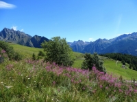 Panorama sull'alpe Balme de Bal - sullo sfondo la corona formata da Becca Crevaye (3.320), Mont Clapier (3.437), Monte Berrio (3.077) e Punta Fiorio (3.332)