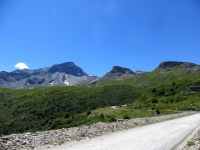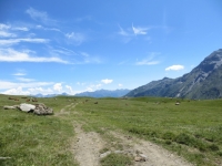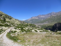 Superato il lago di Roterel in direzione della località Chemin du Glacier - sullo sfondo la massicciata del lago del Moncenisio