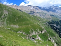 Il sentiero che scende dal Passo Invergneux nel vallone di Grauson - primo attraversamento del torrente
