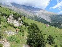 Il tratto difficile e poco pedalabile che scende dall'Alpe Tour verso la Grange Prapiano