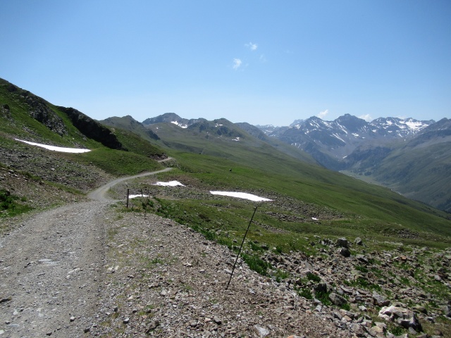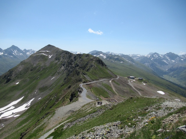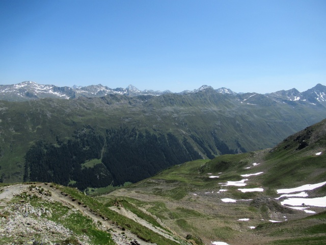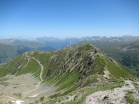 Panorama dal lo Jakobshorn - Di fronte le pendici del Rinnerhorn e del Leidbachhorn che saranno scalate in single track salendo dalla valle di  Sertig