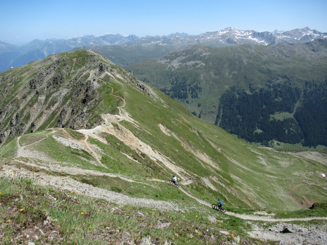 Panorama nord dallo Jakobshorn - La discesa MTB per Teufi