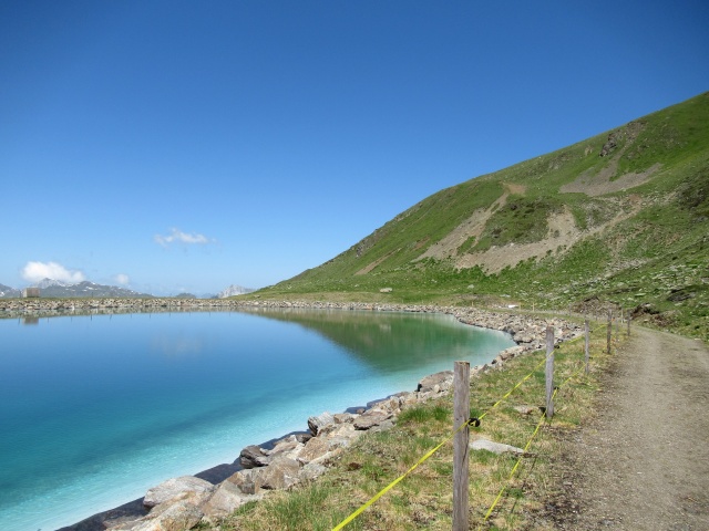 Il bel lago artificiale che si incontra con brevissima deviazione scendendo dallo Jakobshorn prima di imboccare il single track