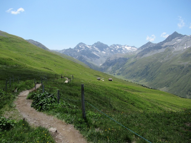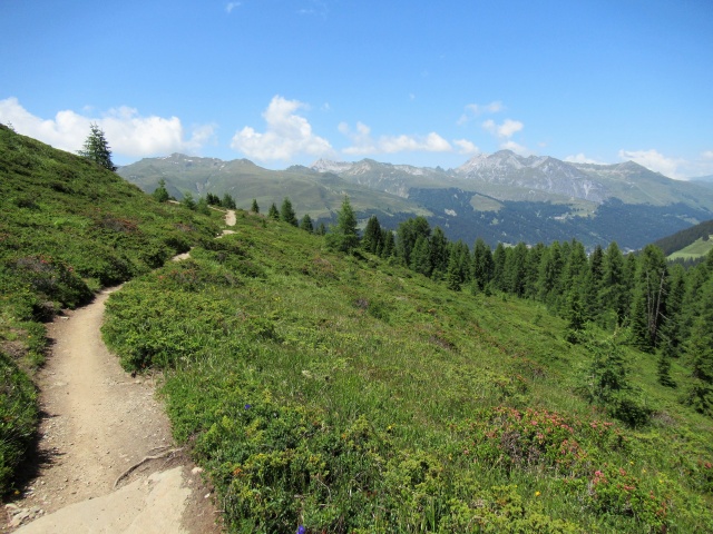 Sentiero che  da Sand sale ad Äbirügg - Panorama sullo Jakobshorn e sullo Jatzhorn