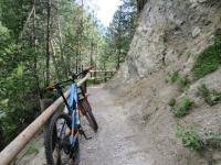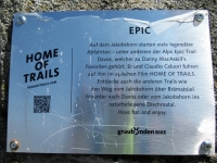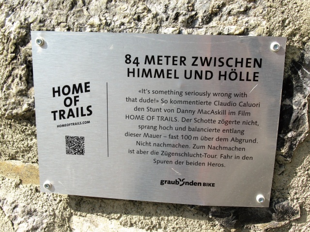 Alps Epic Trail Davos - Targa nei pressi del famoso ponte di pietra percorso sul bordo da Danny Macaskill nel video Home of Trails