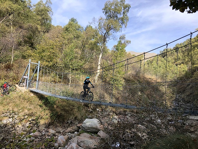 tratto a mano: all’incirca sono stati stimati 30 minuti complessivi di cui al dettaglio a seguire. Innanzitutto da segnalare circa 5 minuti a mano per tratti difficoltosi su pietraia o sentiero poco pedalabile nel collegamento tra l’Alpe Artignaga ed il cosiddetto “Ponte tibetano”; altri 5 minuti circa per attraversare il Rio Caramala nei pressi dell’omonima Alpe ed all’incirca 15 minuti (escludendo i tratti ciclabili) lungo l’F6 dal Ponte dei Lavaggi alla sovrastante Alpe dei Lavaggi