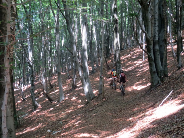 Lungo il sentiero della Granfondo del Mottarone, passaggio nella faggeta