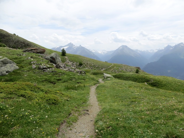 In direzione dell'alpeggio Tsa de la Comba - sullo sfondo l'Alpe Tsa de Morgnoz