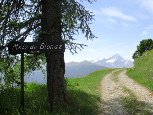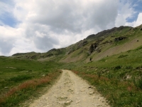 La facile poderale che sale in direzione dell'Alpe Metz de Bionaz