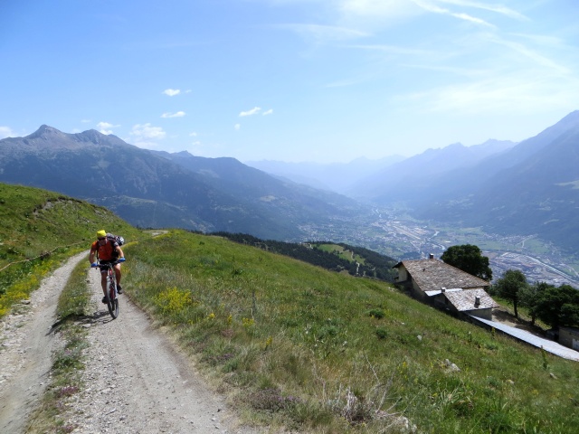 Il single-track che scende dall'Alpe Tsa de la Comba