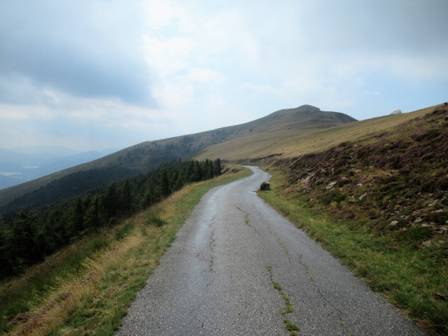 Discesa su asfalto dalla Capanna Monte Bar verso il Motto della Croce