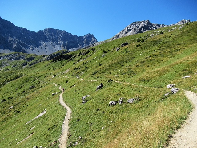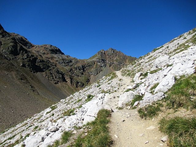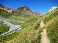 Il sentiero che scende dal Passo Invergneux nel vallone di Grauson - primo attraversamento del torrente