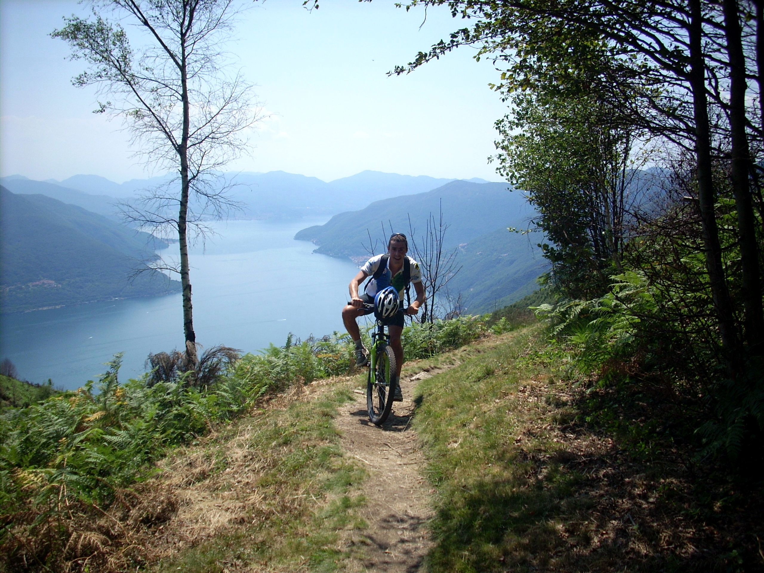 Giro che dalle sponde del Lago maggiore conduce al caratteristico abitato di Rasa, piccolo borgo raggiungibile esclusivamente a piedi/bici oppure con la funivia che risale dalla Centovalli. L’itinerario ha inizio dalla periferia della città di Ascona con risalita verso località Monte Verità da cui una ombreggiata ciclabile asfaltata nel bosco conduce sulla strada che risale ai Monti di Ronco. Il tratto ascensionale si caratterizza per bassa percorrenza di traffico veicolare ed offre interessanti scorci panoramici sul sottostante Lago. Quasi raggiunta la sommità, la strada diviene chiusa al traffico con sbarra e segue un ultimo tratto in asfalto che porta brevemente a scollinare in direzione di Rasa. Dallo scollinamento, nel bosco, parte un sentiero a tratti tecnico e veloce che termina al centro del piccolo borgo. Segue un secondo tratto in saliscendi (tendenza a scendere) decisamente più impegnativo in direzione Bordei che richiede molteplici passaggi a mano, grandi doti di equilibrio/tecnica ed una sana dose di “incoscienza”. Quest’ultimo tratto può essere minimizzato seguendo una variante che scende più diretta con breve risalita finale (allegata traccia Gps per variante). A Bordei si riprende il tratto in asfalto caratterizzato da discesa – a tornanti – intervallata da breve risalita di quota. La strada termina in prossimità del Lago artificiale di Palagnedra con attraversamento della diga e sbocco sulla strada principale della Centovalli che verrà percorsa in tendenziale discesa fino al paese di Intragna. Qui giunti, si abbandona quasi subito la strada secondaria che conduce ad Ascona per costeggiare su ciclabile in sterrato dapprima il torrente Melezza e poi il fiume Maggia fino al punto di partenza (comodo parcheggio libero), in prossimità della foce con il Lago Maggiore