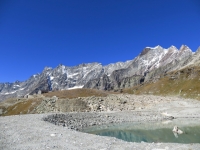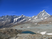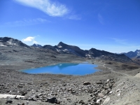 Il Lago Goillet, più in giù la conca di Cervinia e le Grandes Murailles in sfondo