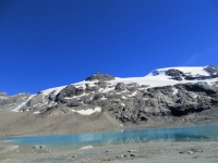 Laghi Cime Bianche, sullo sfondo il Testa Grigia e la Gobba di Rollin separati dal ghiacciaio di Valtournenche
