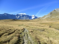Il sentiero prativo sulla via di ritorno per Cervinia - di fronte il ghiacciaio delle Grandes Murailles