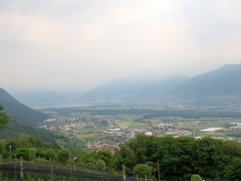 Il tratto terminale del Lago Maggiore ed il Piano di Magadino visti dalla Cima di Medeglia in una giornata di foschia