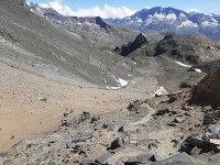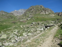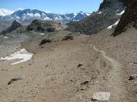 Il sentiero che scende dal Passo Invergneux nel vallone di Grauson - primo attraversamento del torrente