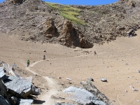 La traccia "lunare" che conduce all'interno del vallone del Leynir