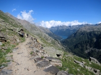 Il sentiero balcone che sovrasta la strada del Nivolet - Vista sul Lago di Ceresole Reale