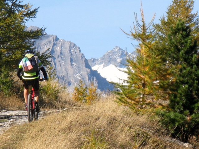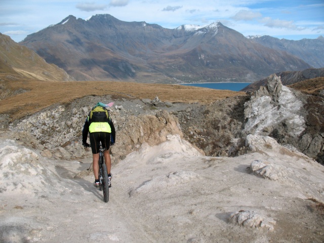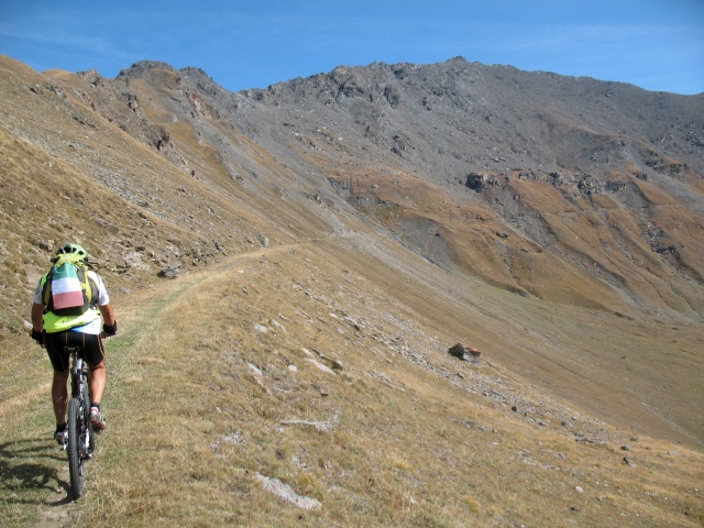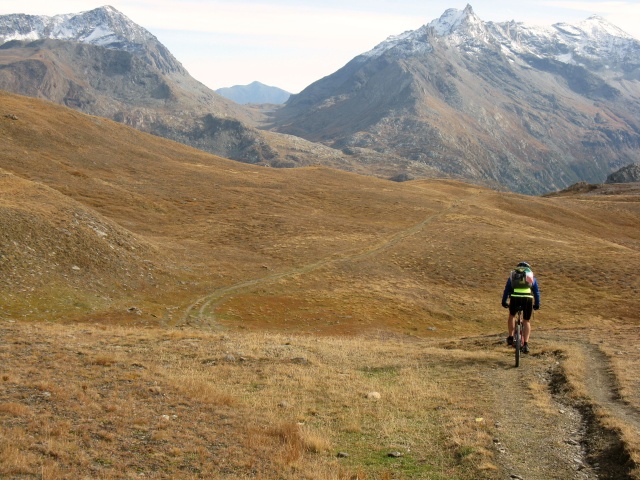 Vista sulla vallone percorso in single-track per l'ascesa finale al Colle di Sollieres