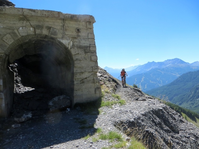 Segnalazione sulla galleria da attraversare: sono in corso lavori di sistemazione e si può passare senza impianto di illuminazione. E’ presente un buco nella volta della galleria che fa passare il sole.