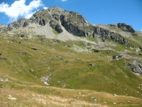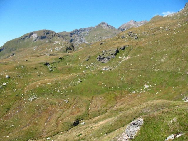 Il sentiero che scende dal Passo Invergneux nel vallone di Grauson - primo attraversamento del torrente