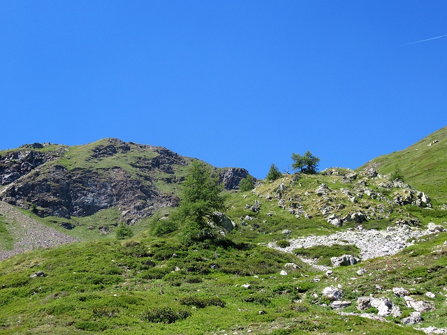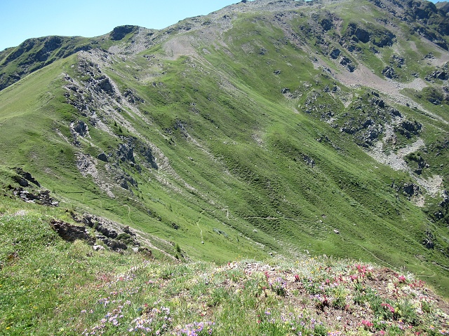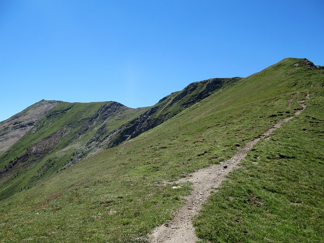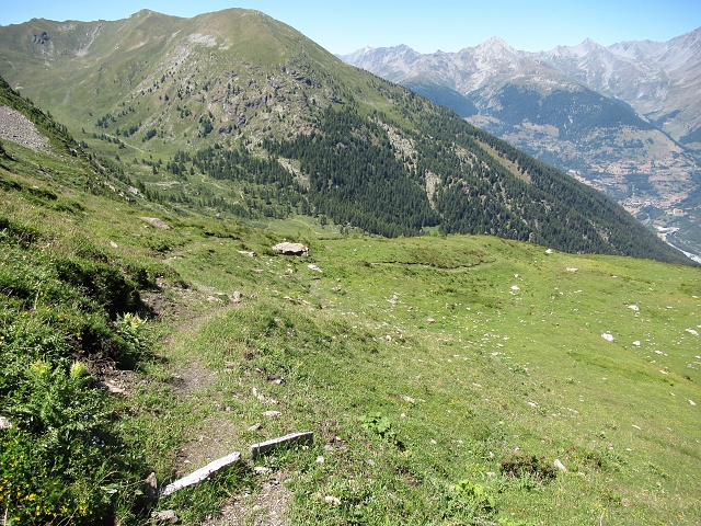 Il sentiero che dal Colle Tardiva scende verso la sottostante Alpe Tardiva