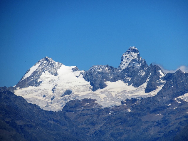 Dent d'Hérens (4.174) e Punta del Cervino (4.478) dalla Costa Tardiva