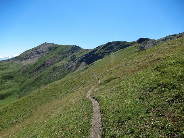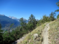 Il sentiero che corre lungo la Costa Tardiva - Sullo sfondo la Pointe de Metz e sulla Pointe Chaligne