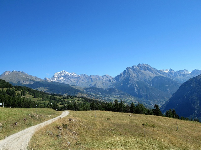 In direzione dell'alpeggio di Ronc-Parmé - Sullo sfondo il Grand Combin