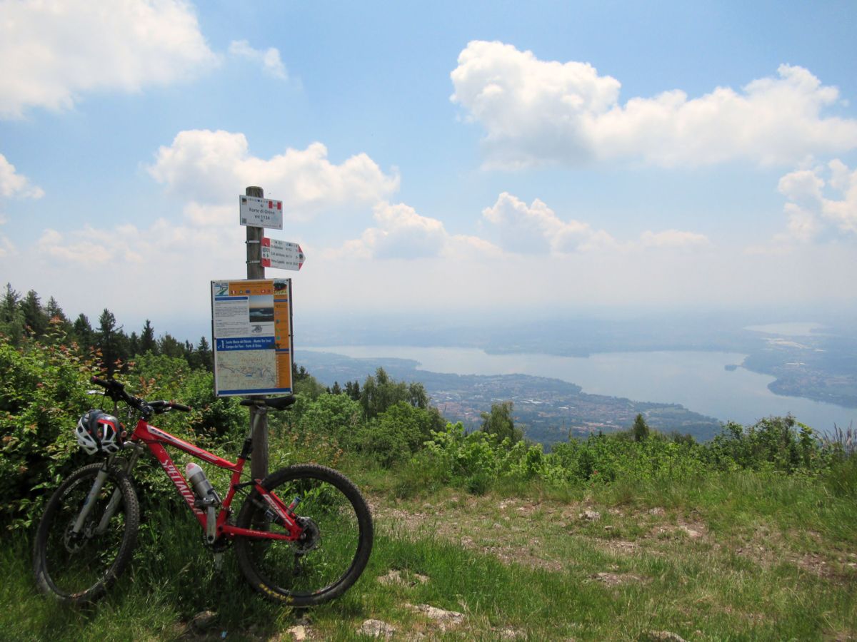 Partendo dalla frazione di Sant’Ambrogio in Varese (quota 450 circa) in prossimità di Villa Toeplitz, l’ascesa al massiccio del Campo dei Fiori ha luogo su strada asfaltata che, alternando tratti più abbordabili (in specie dopo la deviazione Campo dei Fiori/Sacromonte di Varese) a tratti più impegnativi, sempre comunque inferiori al 10% come pendenza, termina presso il panoramico piazzale alle porte del cancello di ingresso del giardino botanico e della Cittadella di Scienze della Natura (quota 1.135). In questo tratto il guadagno altimetrico è di circa 700 metri in 9,4 km e la salita si sviluppa per la gran parte all’interno del bosco, dunque con ombreggiamento favorevole anche in giornate calde. Dal piazzale poi si imbocca l’evidente strada militare sterrata che attraversa in quota le pendici del massiccio del Campo dei Fiori e conduce in circa 4 km ai resti della fortificazione militare del “Forte di Orino” percorrendo tratti in leggera salita intervallati da tratti in moderata discesa. Solo nella parte finale lo sterrato affronta alcune rampe maggiormente più ripide. Giunti al panoramico spiazzo con i (pochi) resti dell’antico Forte (quota 1.075) per la discesa a valle occorre ritornare per un centinaio di metri a ritroso ripercorrendo i tornanti affrontati in precedenza e nei pressi dell’ultimo si individua facilmente un sentiero che scende all’interno del bosco al termine di una corta scalinata di tronchi: è l’attacco del sentiero 13/313. Inizialmente il sentiero percorre un tratto di pineta caratterizzato da elevata pendenza ma fondo piuttosto pulito, poi facendo ben attenzione ad individuare la palina segnaletica del 13/313 (il sentiero infatti qui si sdoppia con l’11/311) si percorre con qualche difficoltà e qualche (forse) brevissimo tratto a mano un pezzo decisamente più tecnico e lento fino a quota 750 circa a partire dalla quale il sentiero si caratterizza poi per passaggi più flow e veloci ed in breve ci si trova ad incrociare l’ampia e facile traccia del sentiero 10/310. Deviando a sinistra e seguendo sempre in tendenziale discesa il sentiero/sterrata segnavia nr.10/310 – direzione Velate – (tenere la sinistra al bivio in località al Piano), le indicazioni escursionistiche conducono senza difficoltà nei pressi del precitato abitato. Qui, seguendo la traccia gps, si riesce ad evitare di sovrapporsi con la tratta dell’andata compiendo un tratto di sentiero che scende alla frazione di Sant’Ambrogio. Per approfondimenti inerenti il Parco Regionale è possibile visionare il sito internet ufficiale