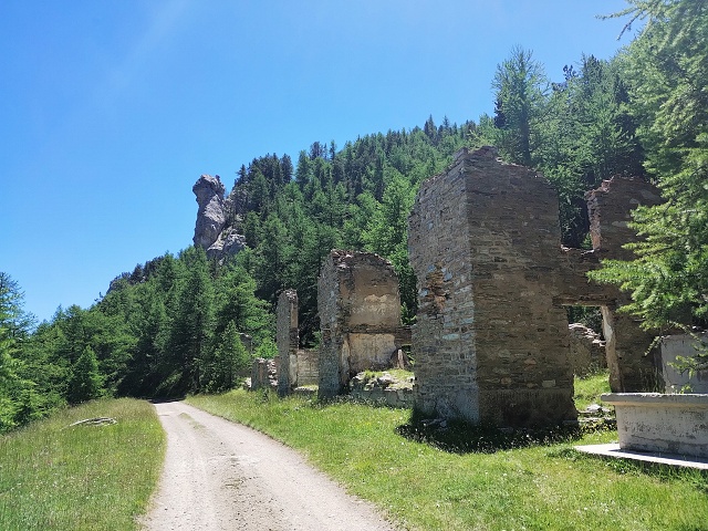 I resti di una casermetta diroccata in prossimità del Colletto Pramand