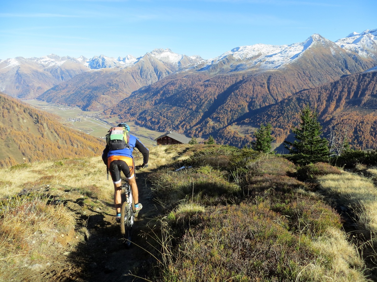 discesa: dalla Galmihornhütte si scende all’interno del bosco su strada bianca/forestale con buon fondo, quindi difficoltà inesistente; prima di giungere alla Galmihornhütte, dai pascoli di Alpje (località Treichbode) si scende su facile e largo sentiero, caratterizzato da qualche divertente angolo di curva piuttosto facile.