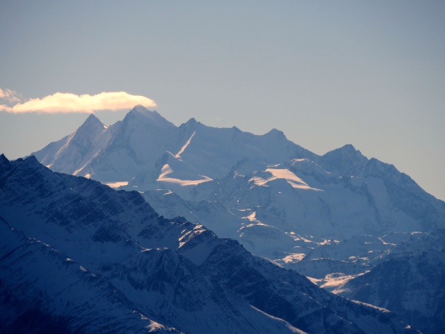 Panorama sui rilievi innevati dell'Obergoms dalla Galmihornhütte - inizio della discesa