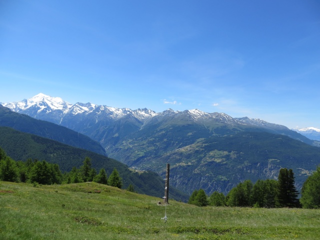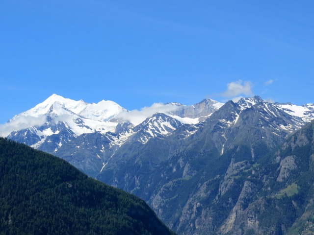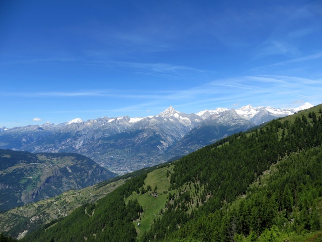 Panoramica su alcune vette della Mattertal - Weisshorn (4.506), Bishorn (4.153), Brunegghorn (3.833), Barrhorn (3.583) e tutta la catena montuosa che degrada verso Stalden