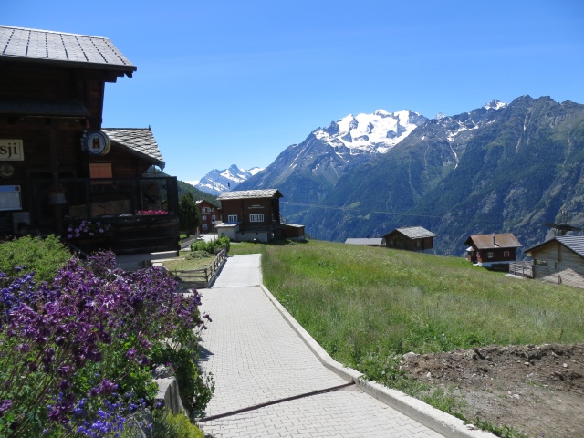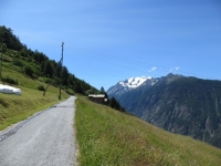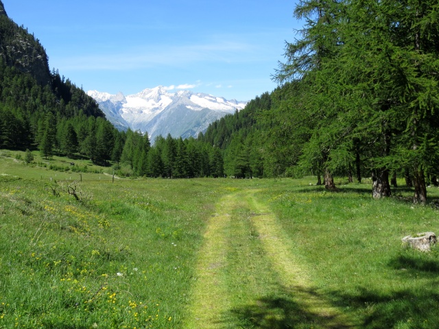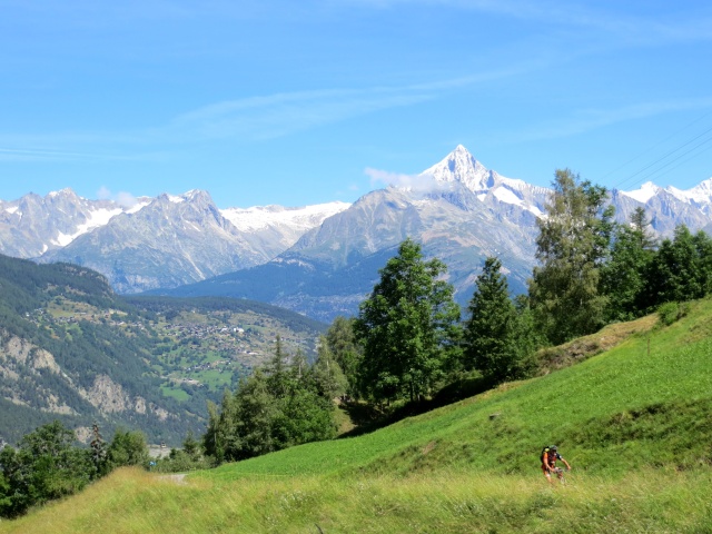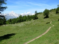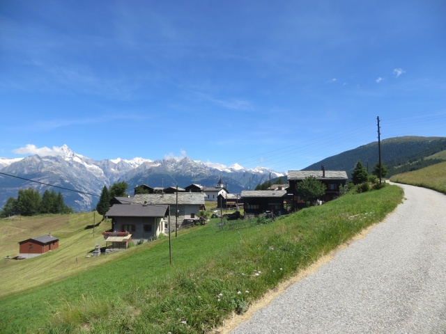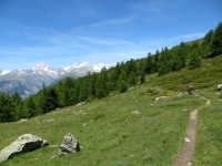 Salita a Riedji, sullo sfondo le prime vette del massiccio del Mischabel, tra cui il Balfrin (3.796) ed il Bigerhorn (3.626)