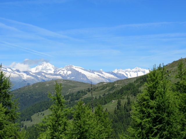 Gspon, vista sul massiccio del Mischabel, tra cui il Balfrin (3.796), il Bigerhorn (3.626), lo Schilthorn (3.402) - sullo sfondo l'Egginer (3.367 - Saas Fee)