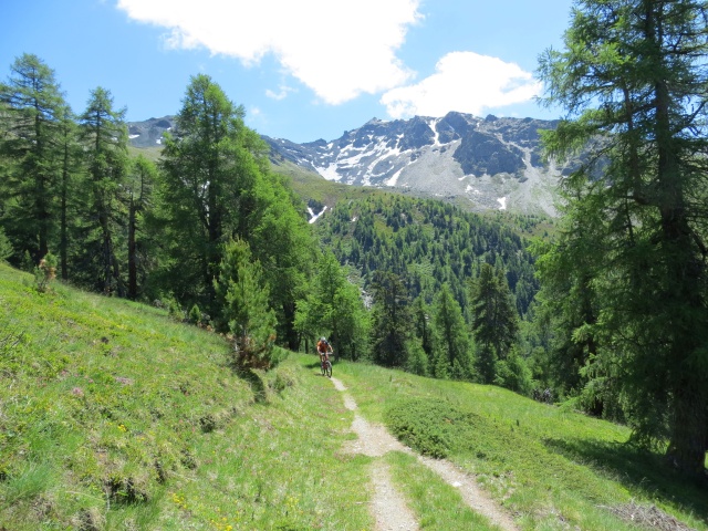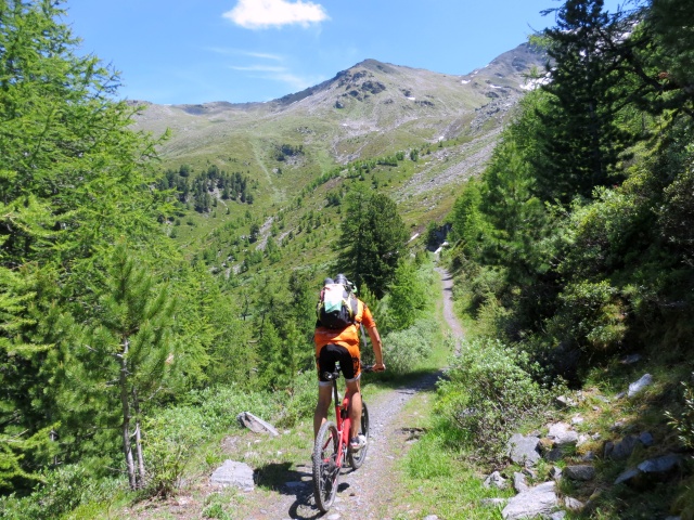 Tratto iniziale della forestale che sale da Riedji a Gspon